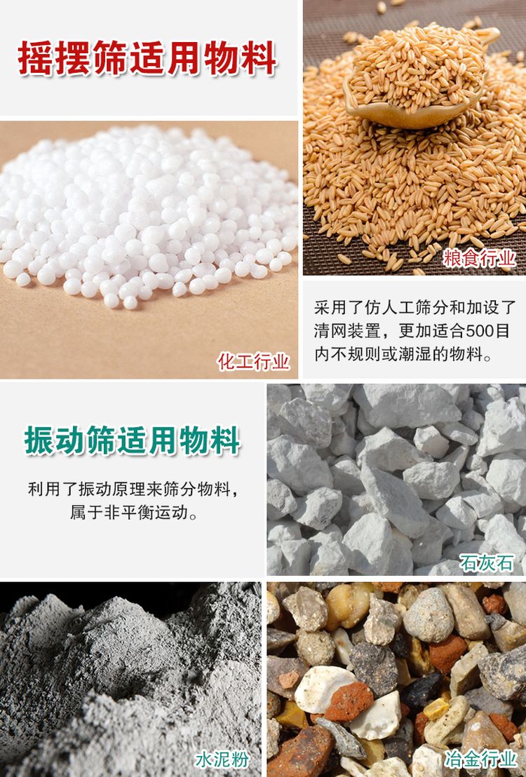 搖擺篩由于采用了仿人工篩分和加設了清網(wǎng)裝置,所以更加適合500目內(nèi)不規(guī)則或潮濕的物料,克服了普通振動篩的堵網(wǎng)風險,而振動篩屬于非平衡破壞暴力運動,利用了振動原理來篩分物料,所以有時還會破壞物料,所以對于一些顆粒狀結晶焦脆物料,建議使用搖擺篩,其篩分精度可達95% 以上。