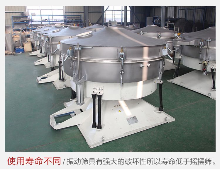 針對30目以粗上物料而言,振動篩和搖擺篩產(chǎn)量基本相同,對30以細至500目原材料來說,搖擺篩的生產(chǎn)量則大大高過振動篩,一般為振動篩的5—10倍。