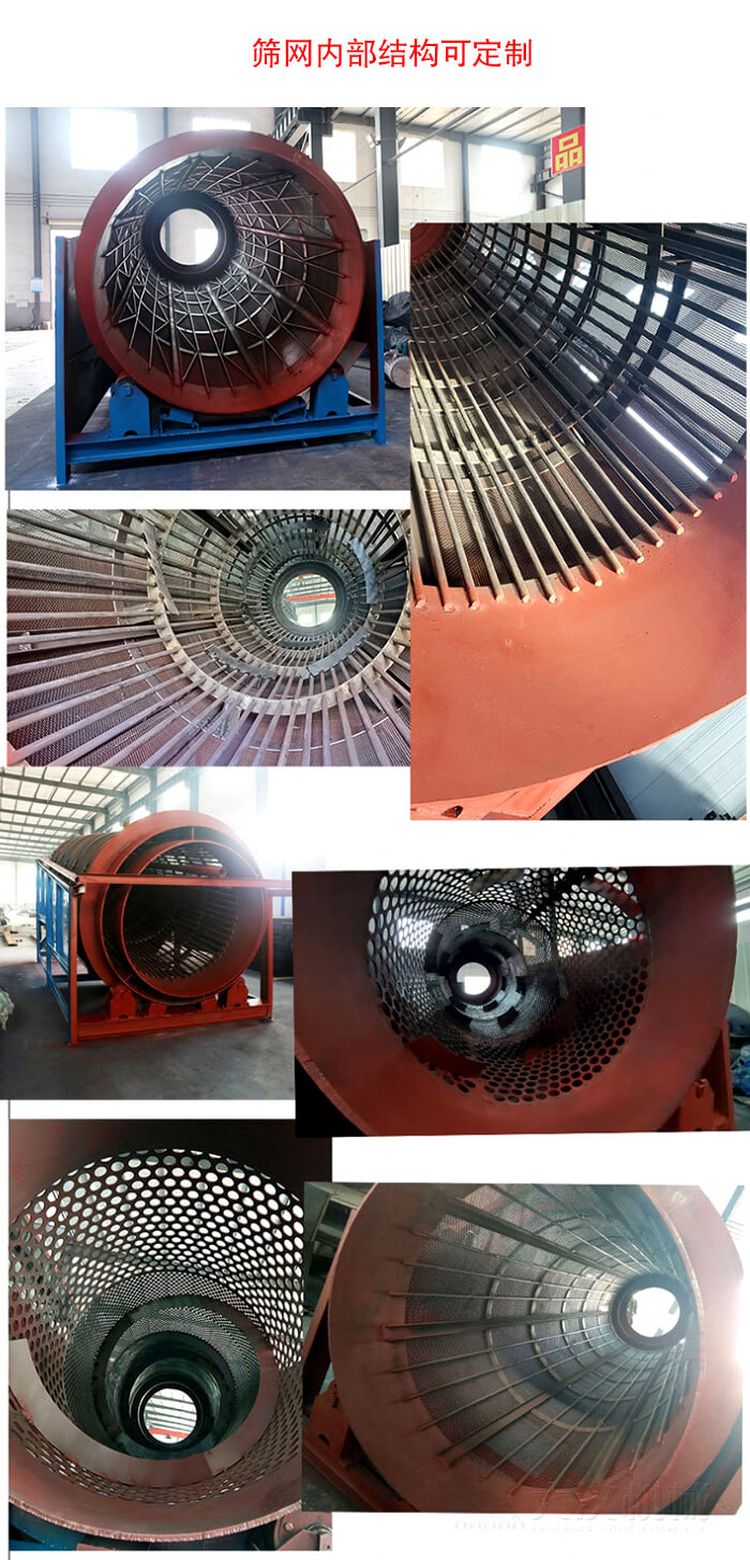 重型滾筒篩是由若干個(gè)圓環(huán)狀網(wǎng)組成,其總篩分面積遠(yuǎn)遠(yuǎn)大于其它篩型的篩分面積,再加上篩分效率高,設(shè)備運(yùn)行時(shí)間短,故而使用壽命較長(zhǎng) ,易損件少、維護(hù)量小。