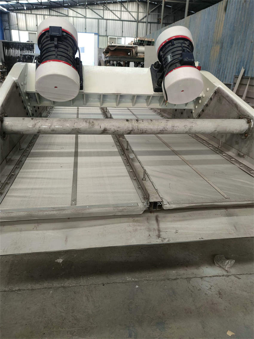 1、篩機整體采用水平安裝,篩網(wǎng)傾斜安裝,可以保證強制脫水;