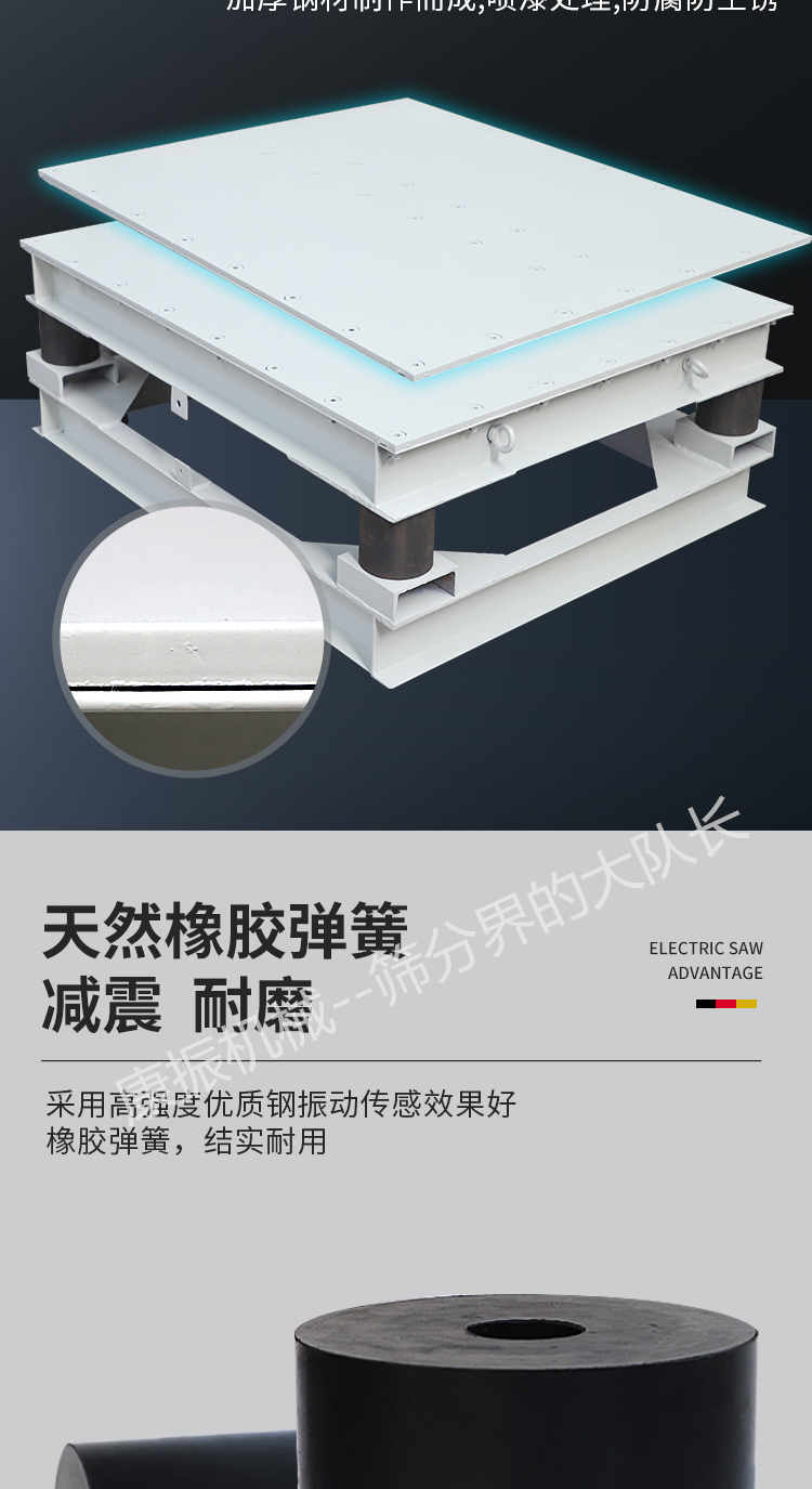 2、振蕩電機(jī)為激振源,噪聲低、耗電小、保護(hù)簡略。