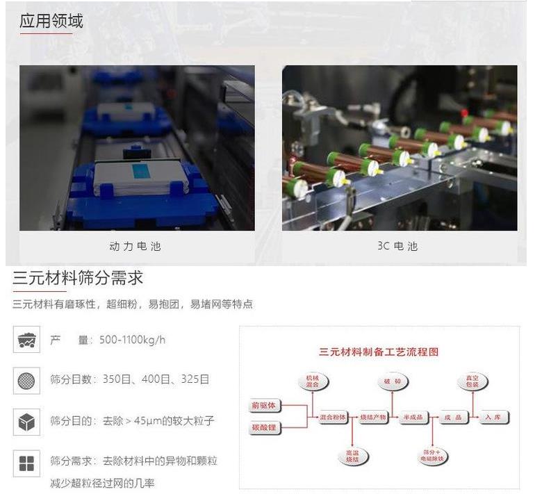 由于超聲波振動在新能源行業(yè)的**表現(xiàn),在線清網效果明顯,對于比較難篩分的物料有其顯著的效果。